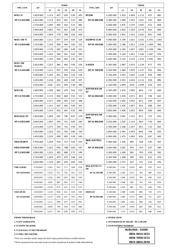 HARGA KREDIT MOTOR YAMAHA . Sumber Gambar : www.slideshare.net